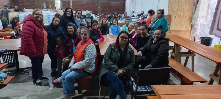 A Prefeitura de São Leopoldo, por intermédio da Secretaria Municipal de Direitos Humanos (Sedhu), está fazendo acolhimento psicológico para as mulheres vítimas da enchente. Nesta segunda-feira, 27, a psicóloga Vilene Moehlecke, a diretora de Políticas Públicas, Salete Souza, e a estudante de psicologia Jéssica Jasmine, levaram o apoio à Igreja Santa Rita de Cássia, em formato de roda de conversa e escuta para proporcionar um momento de integração e conforto. A ação também contemplou mulheres abrigadas na Associação Cohab Duque.