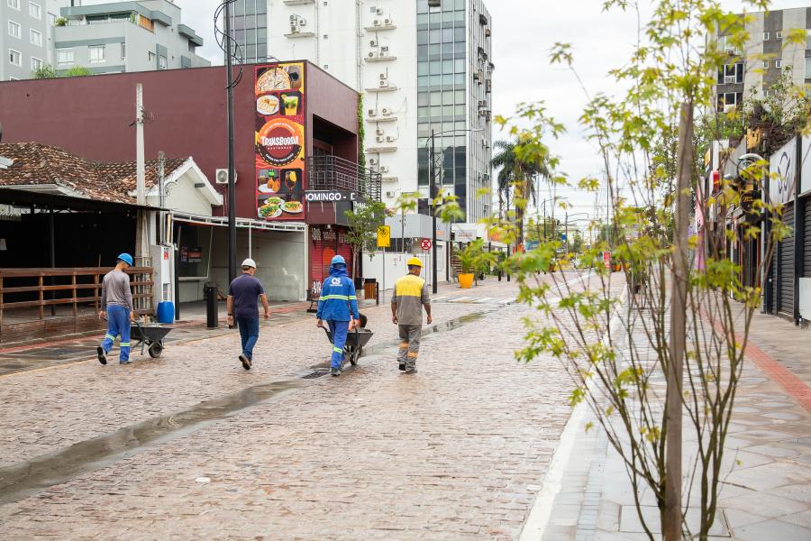 A Secretaria Municipal de Obras Viárias (Semov) iniciou, nesta segunda-feira (1º), os trabalhos finais para a inauguração da Rua Independência, conhecida popularmente como Rua Grande, no Centro de São Leopoldo. As equipes realizam serviços de limpeza e acabamento ao longo da via, em uma operação que avança a cada duas quadras e seguirá até sexta-feira.