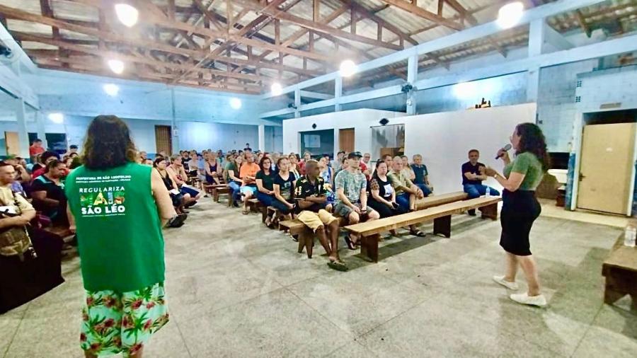 Aproximadamente 299 famílias da São Cristóvão terão seus lotes regularizados por meio do programa Regulariza Mais São Léo, que leva segurança jurídica e moradia digna para a população. Esta primeira reunião é fundamental para os moradores tirarem dúvidas sobre as etapas de regularização, documentações necessárias e também conhecer de perto a empresa responsável por atuar naquele local.